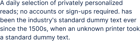 A daily selection of privately personalized reads; no accounts or sign-ups required. has been the industry's standard